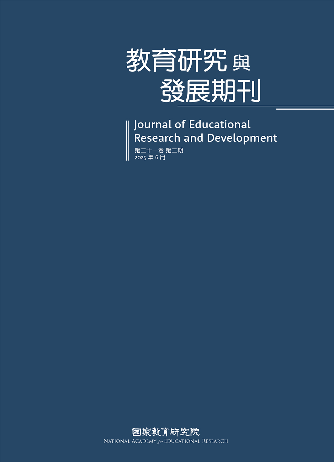 《教育研究與發展期刊》為國家教育研究院發行之教育學術刊物,著重在教育領域內之研究與發展(R&D)方面相關議題,並推廣國內外教育學術研究與交流。